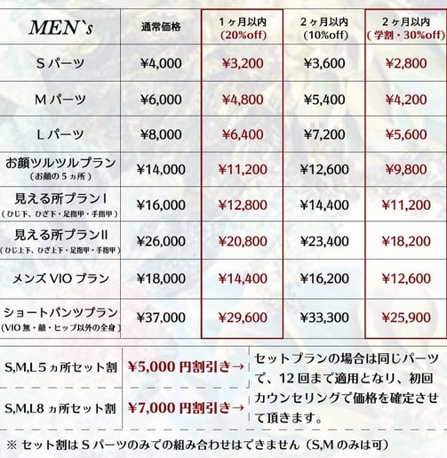 ・90%脱毛卒業を感じた方は、アフターショットで1ショット¥300 でOK!(男性は¥500円)